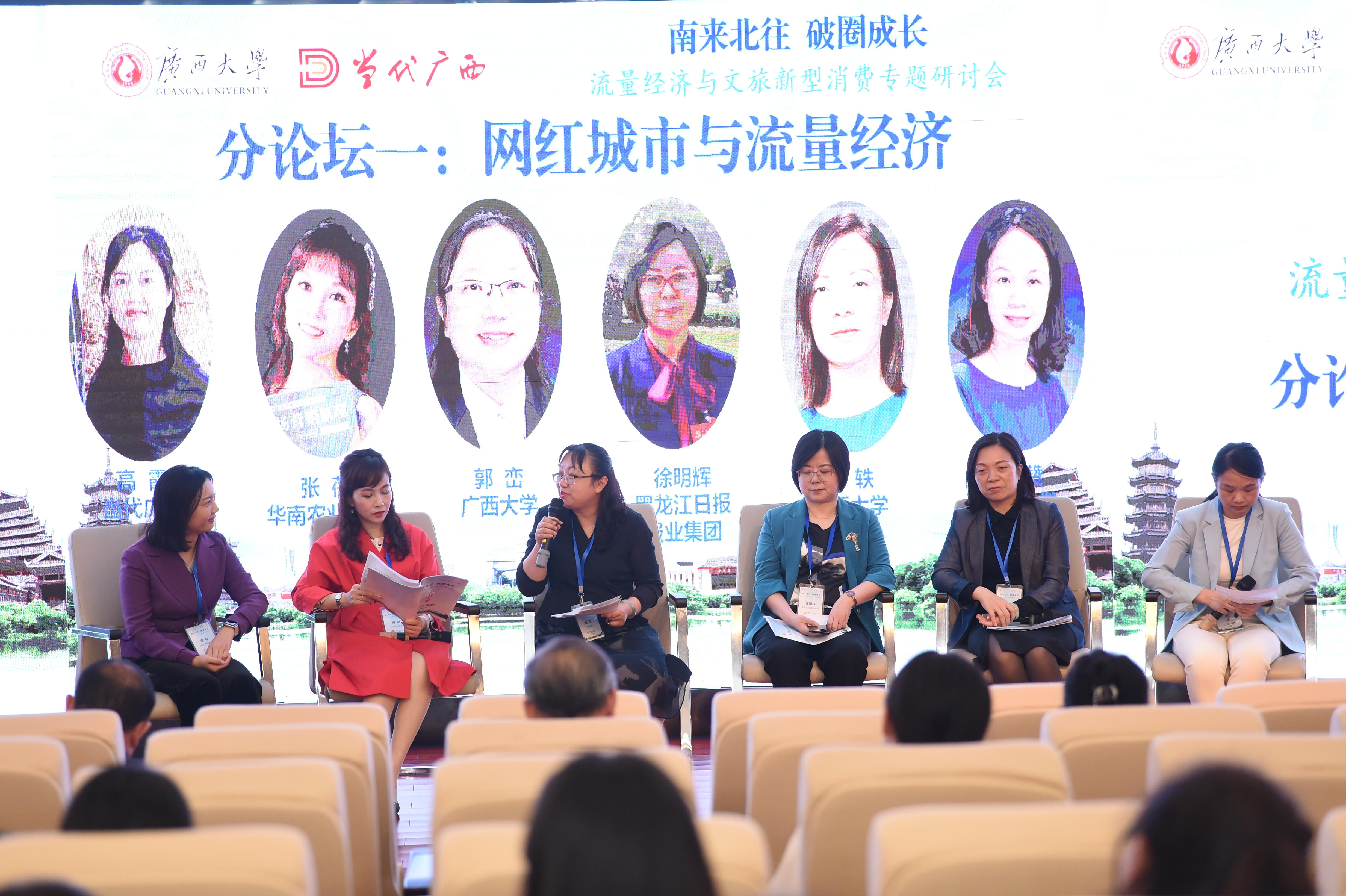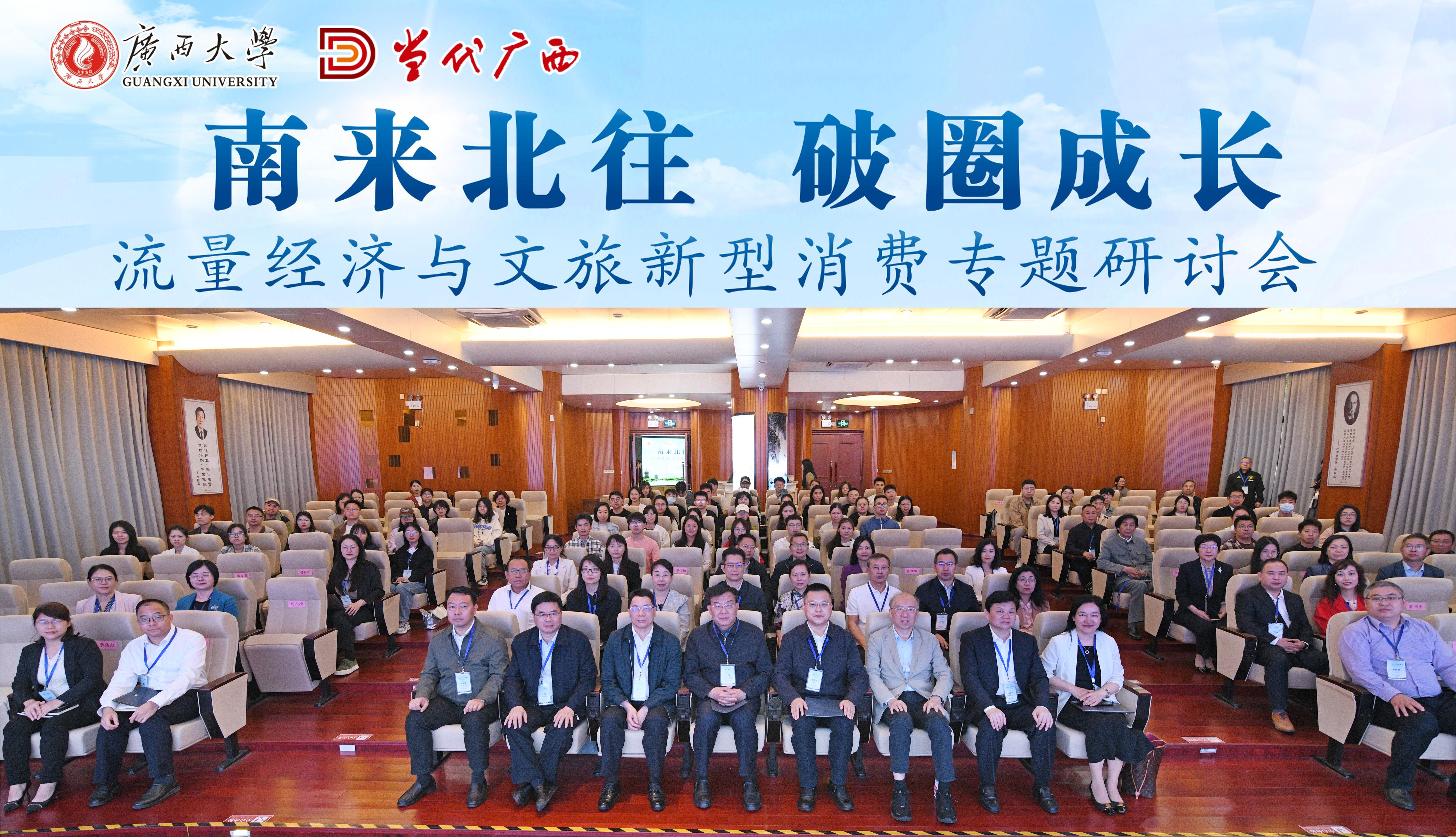 、广西旅游发展集团、南宁市文化广电和旅游局、中国青年报、中国旅游报、广西电视台、当代广西、广西日报和黑龙江日报等单位的专家学者及广西大学师生近100人参加了会议。本次研讨会从政府、高校、企业多维度,对流量经济、文旅新型消费、网红城市、地方文旅发展等进行了深入探讨,把握流量经济下“破圈爆款”带动长久发展的新契机,推动探索文旅新型消费趋势下跨区域合作的具体路径,对促进广西大学旅游管理国家一流专业建设,服务广西文化旅游业的发展,桂林世界级旅游城市和广西世界旅游目的地建设等方面具有重要意义。