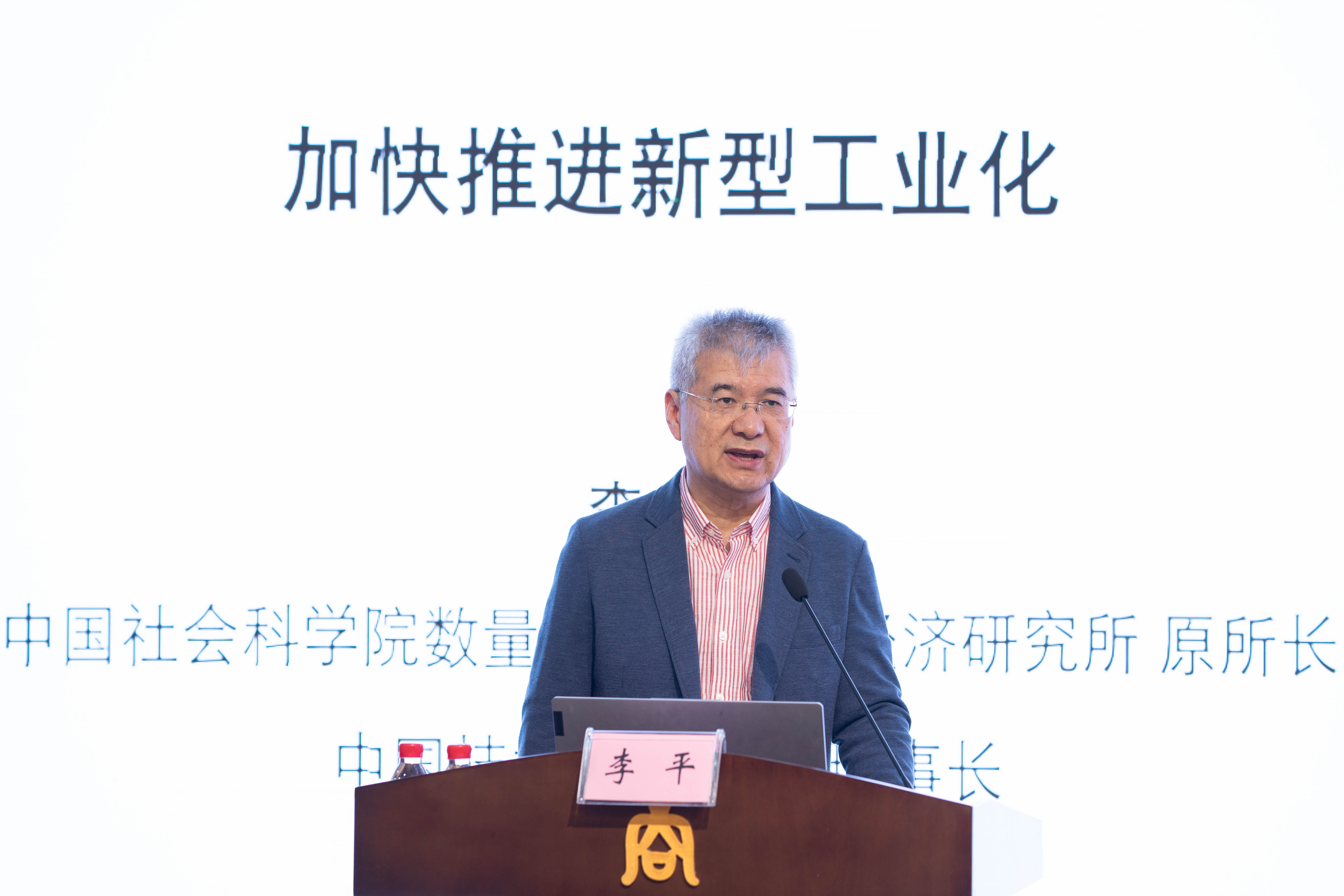 报告中,李平研究员以“习近平总书记在全国新型工业化上的重要指示”为切入点,展示工业化意义及规律,阐述了工业结构演进的动因,并从产业结构升级、国内生产总值及其实际增速和主要经济大国经济总量三个方面展示了中国工业化进程的发展情况。他借用配第—克拉克定理进一步在理论层面论证了产业变动原因,提出新时代的新型工业化具有技术创新驱动、产业结构优化、绿色低碳、数字化等特点,利用数字化技术提升改造传统产业和推进战略性新兴产业发展。李平研究员认为,推进新型工业化战略的主要途径有五个方面:一是以信息化带动传统产业的现代化;二是加快数字产业、人工智能产业等战略性新兴产业的发展;三是推动产业体系优化升级;四是全面提升企业竞争力;五是全面推进工业绿色低碳发展。
