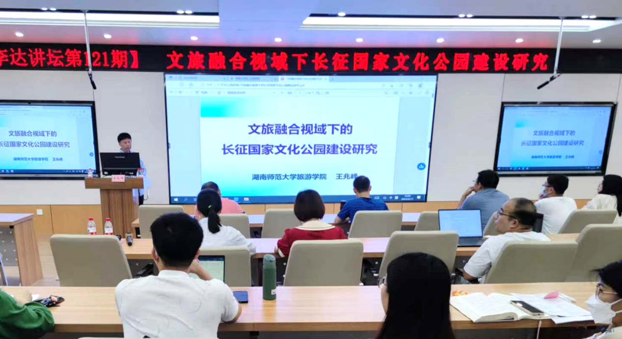 师生带来了一场题为“文旅融合视域下长征国家文化公园建设研究”的精彩学术报告。讲坛由副院长刘民坤教授主持。